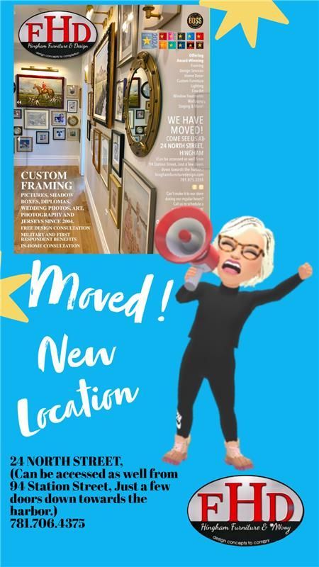 Hingham Furniture & Design, Offering Award-Winning Framing & Design Services. Home Decor,Custom Furniture,Lighting, Fine Art, Window Treatments,Wallpaper Staging & More! Can’t make it to our store during our regular hours? Call us to schedule a private appointment/ consultation. 781-706-4375 Autumn hours : Wednesday- Saturday 10am-5pm Closed Sunday, Monday, Tuesday #hingham #cohasset #hull #southshorema #customframing #fineart #design #deco #autumn #newhours CUSTOM FRAMING PICTURES, SHADOW BOXES, DIPLOMAS, WEDDING PHOTOS, ART, PHOTOGRAPHY AND JERSEYS SINCE 2004. FREE DESIGN CONSULTATION MILITARY AND FIRST RESPONDENT BENEFITS IN-HOME CONSULTATIONButton